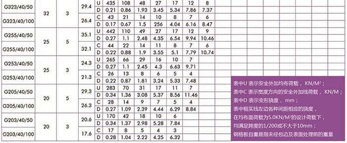 平面型扁鋼中心距為40常用鋼格柵板規(guī)格型號(hào)及安全荷載表